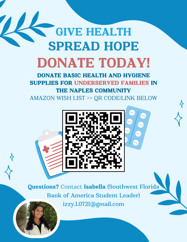 This summer, Isabella is leading a Medical Supply Drive to assemble and distribute 200+ care kits to underserved families in Naples! The kits will contain essential hygiene and first-aid supplies and will be distributed directly to families in need.